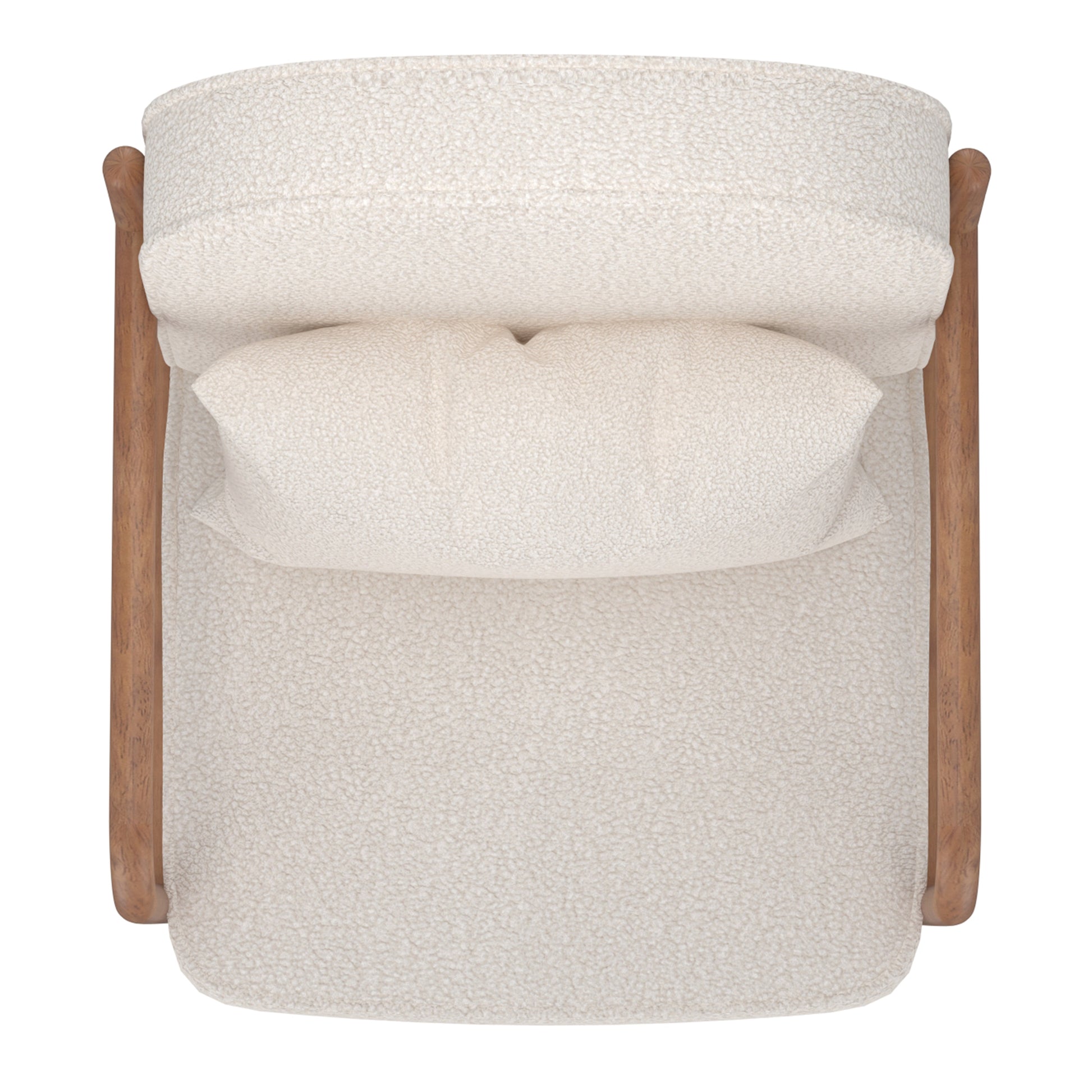 • Finish:WHITE/WALNUT; Material:BOUCLE FABRIC/SOLID WOOD