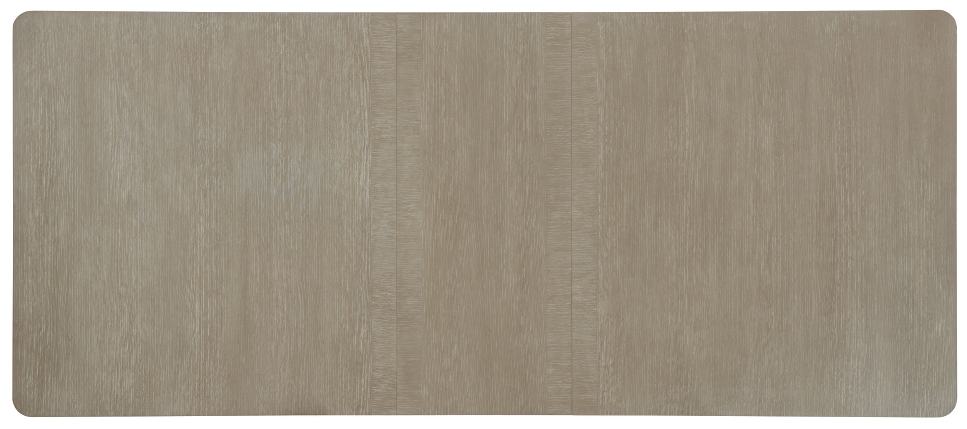• A three-piece geared wood table slide allows you to add or remove leaves.Soft, rounded forms combine with sand-blasted greige and antique white finishes to create an inviting transitional boutique collection in Affinity