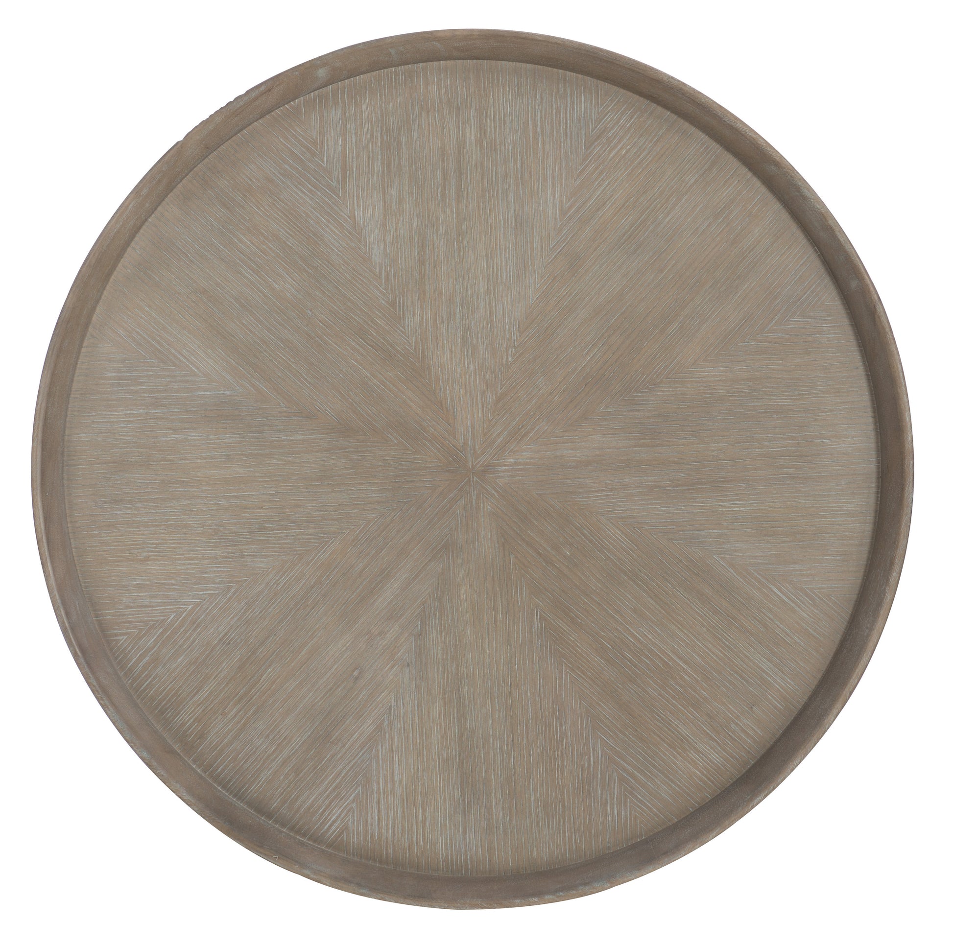 • The tabletop is inset 3 inches all the way around to create a tray-like appearance.Soft, rounded forms combine with sand-blasted greige and antique white finishes to create an inviting transitional boutique collection in Affinity