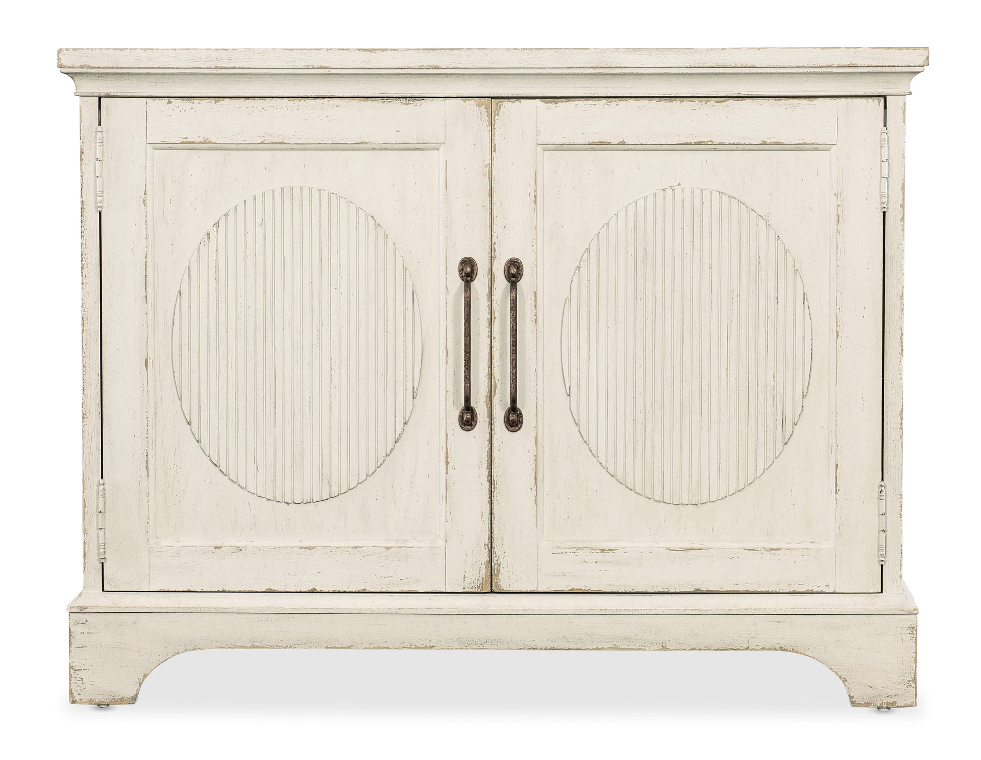 • In a classic, charming design with a nostalgic flair, the Americana Two-Door Chest features a carved oval motif on the door fronts and a softly-shaped base