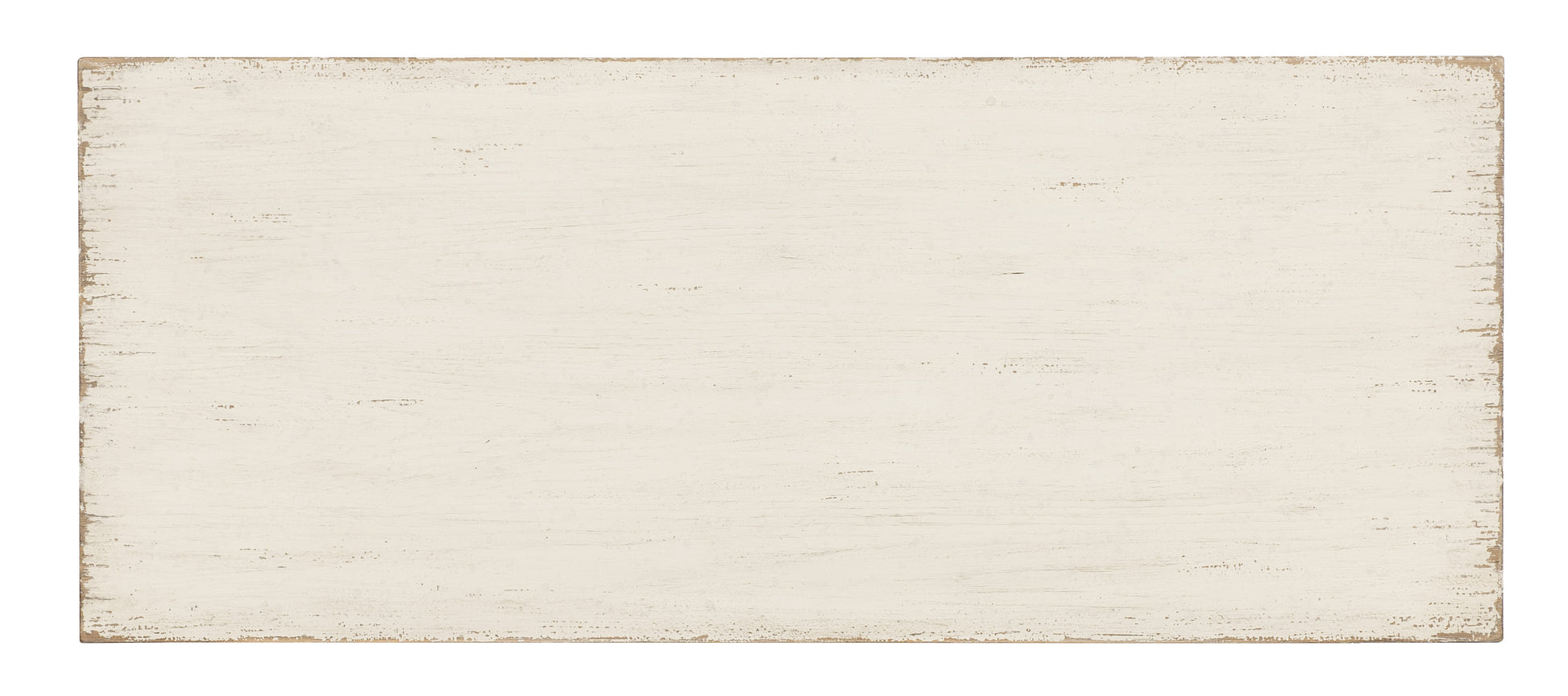 • The chest is finished in the time-worn white Daisy over Cathedral Oak Veneers, representing the natural wear one might expect of pieces passed down through the family over time, revealing the rich oak character beneath