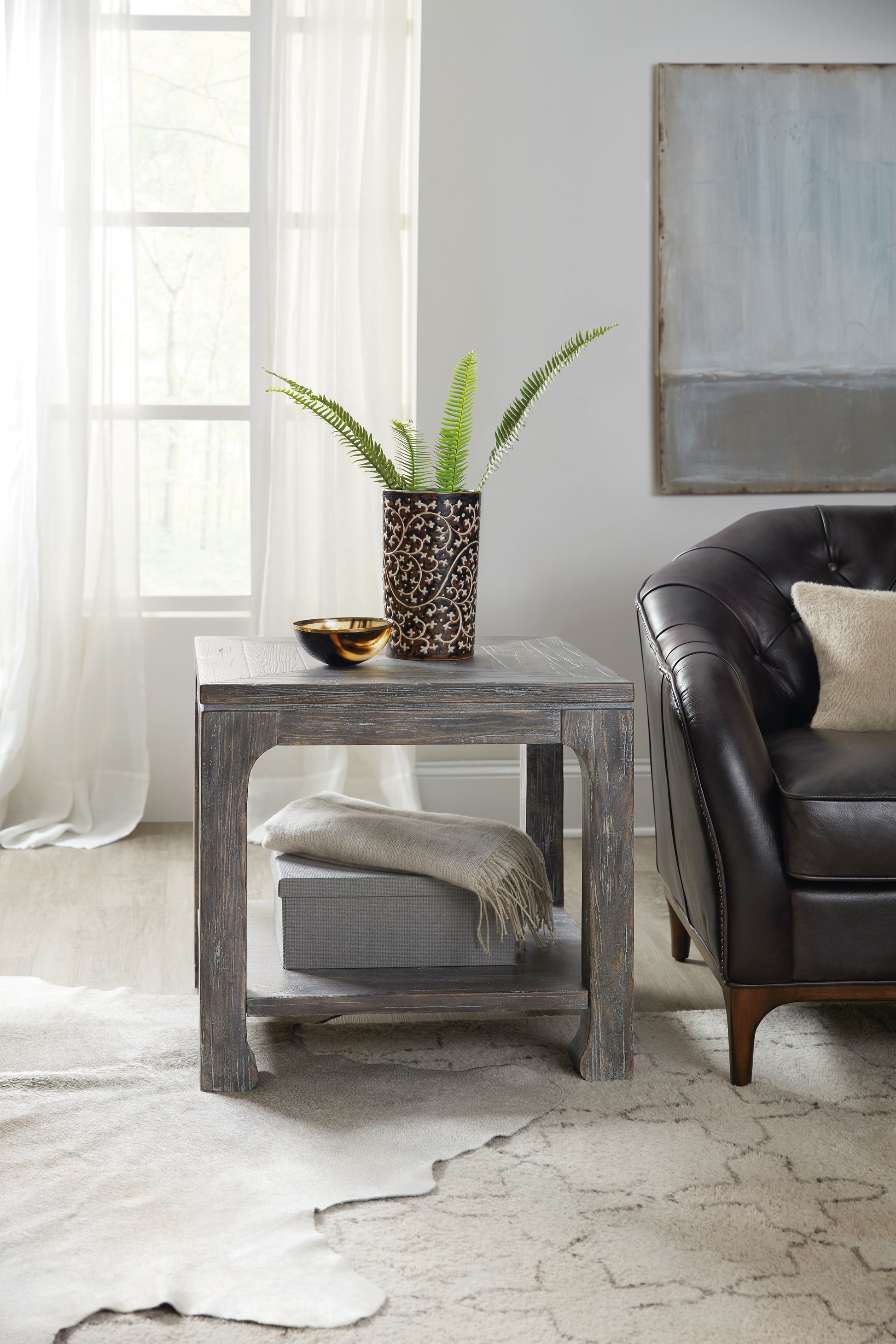 • Crafted of Poplar and Hardwood Solids with Elm Veneers, the table is finished in Root Beer, a dark grey tone on Elm