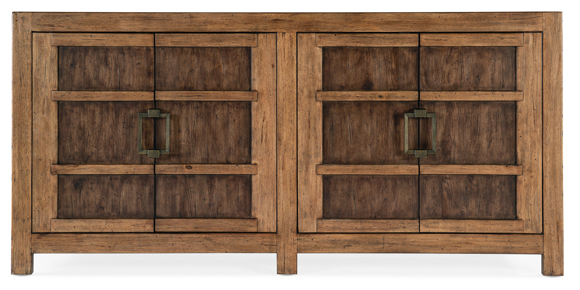 • Warm and rustic with a silhouette that evokes the weight, heft and heritage of beam construction, the Big Sky Buffett is crafted of Pecky Hickory Veneers with a solid wood edged top