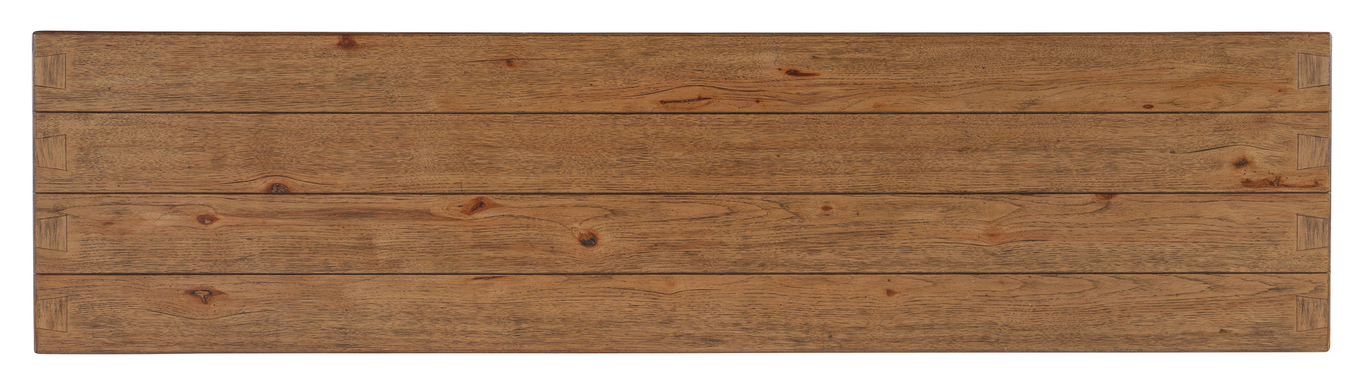 • With a simple and straightforward silhouette that evokes the weight, heft and heritage of vintage beam construction, the Big Sky Console Table is crafted of Pecky Hickory Veneers with a solid-wood edged top