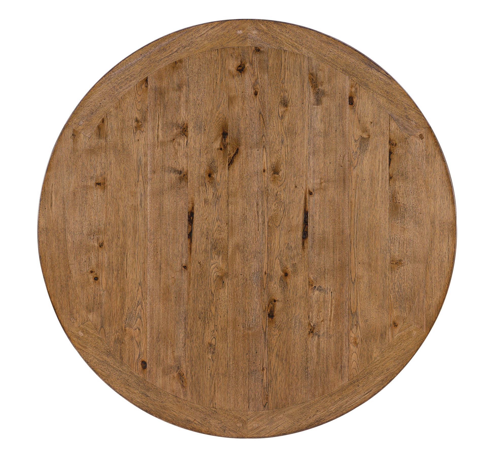 • Tactile and rustic and evoking the artistry of true craftsmanship, the 60-inch round Big Sky Dining Table has an urn-shaped base finished in the Charred Timber color
