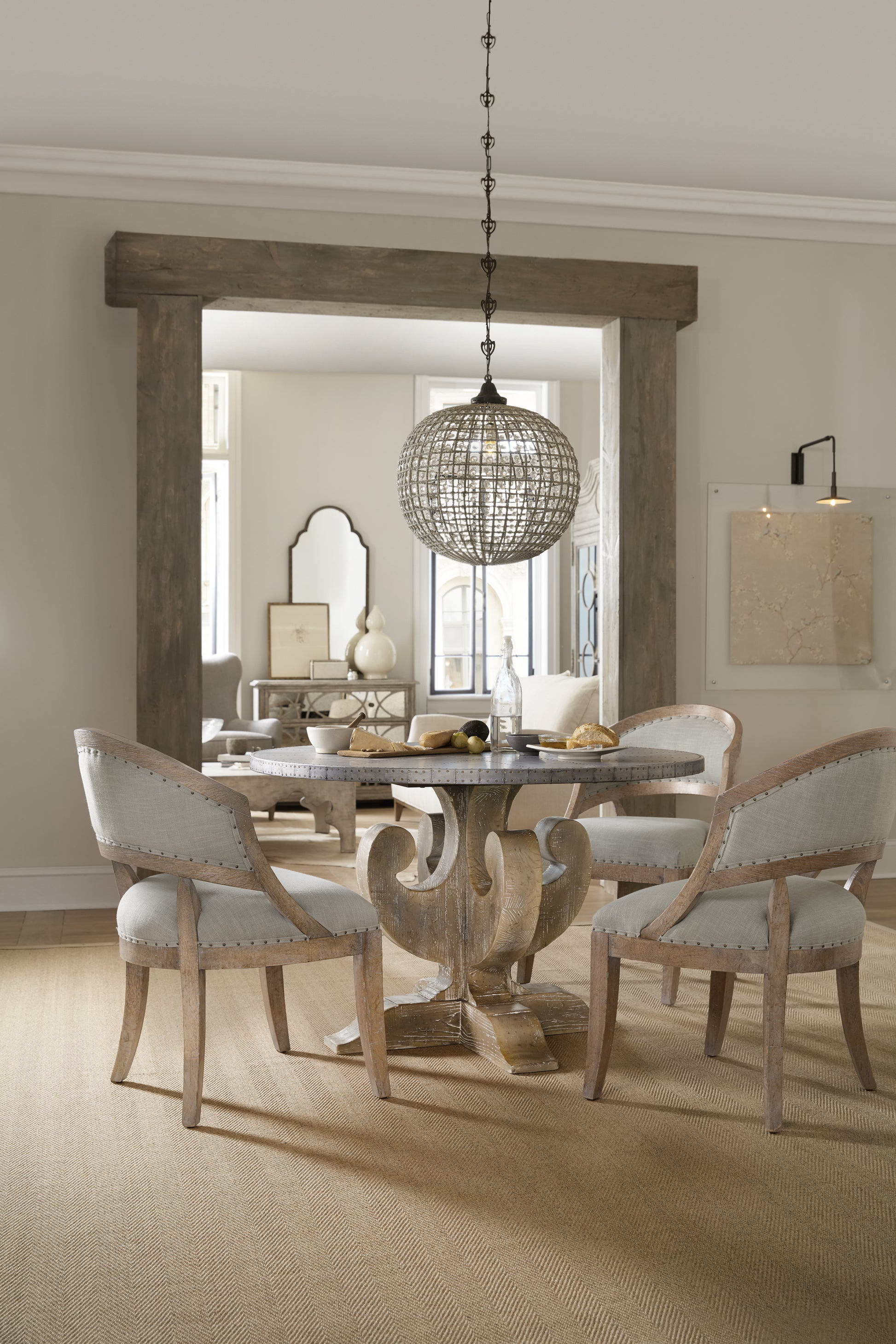 • This lyrical silhouette offers comforting style with its neutral palette and textural blend, combining a soft gray Antwerp 100% Linen fabric trimmed in gimp welt with tiny nailheads, with an Antique Milk Paint finish