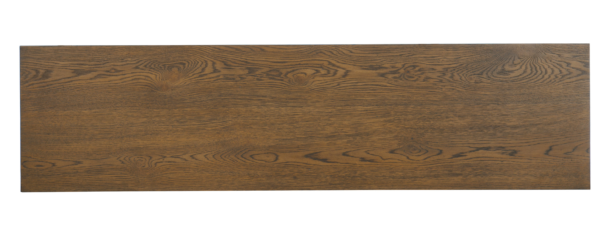 • Custom hardware in a forged pewter finish is complemented by a thinly-scaled metal base and stretcher