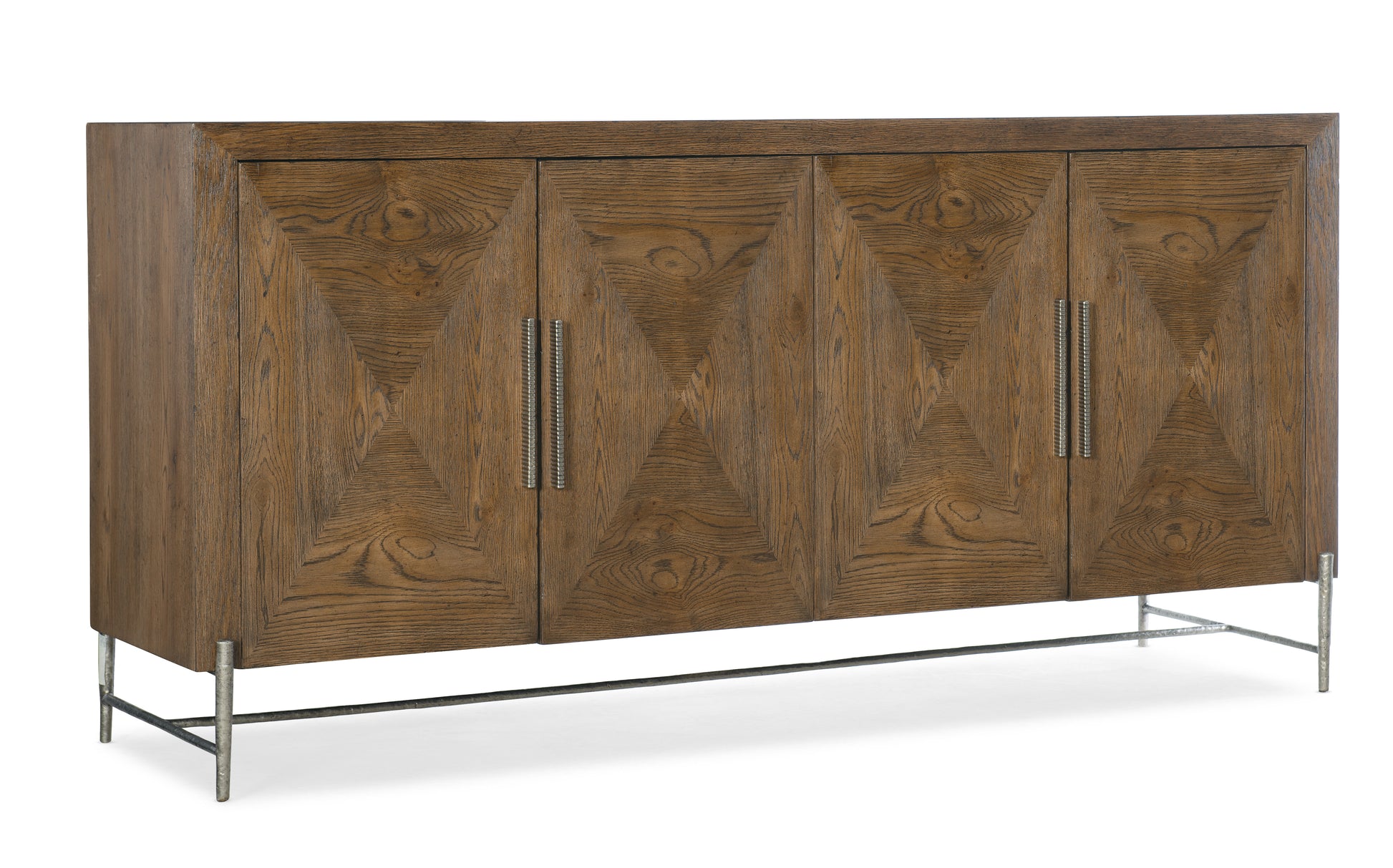 • Craftsman style gets a casual modern twist with the Chapman Buffet, constructed of White Oak Veneers with a warm brown Sorrel finish revealing the woodgrain and a refined decorative veneer pattern