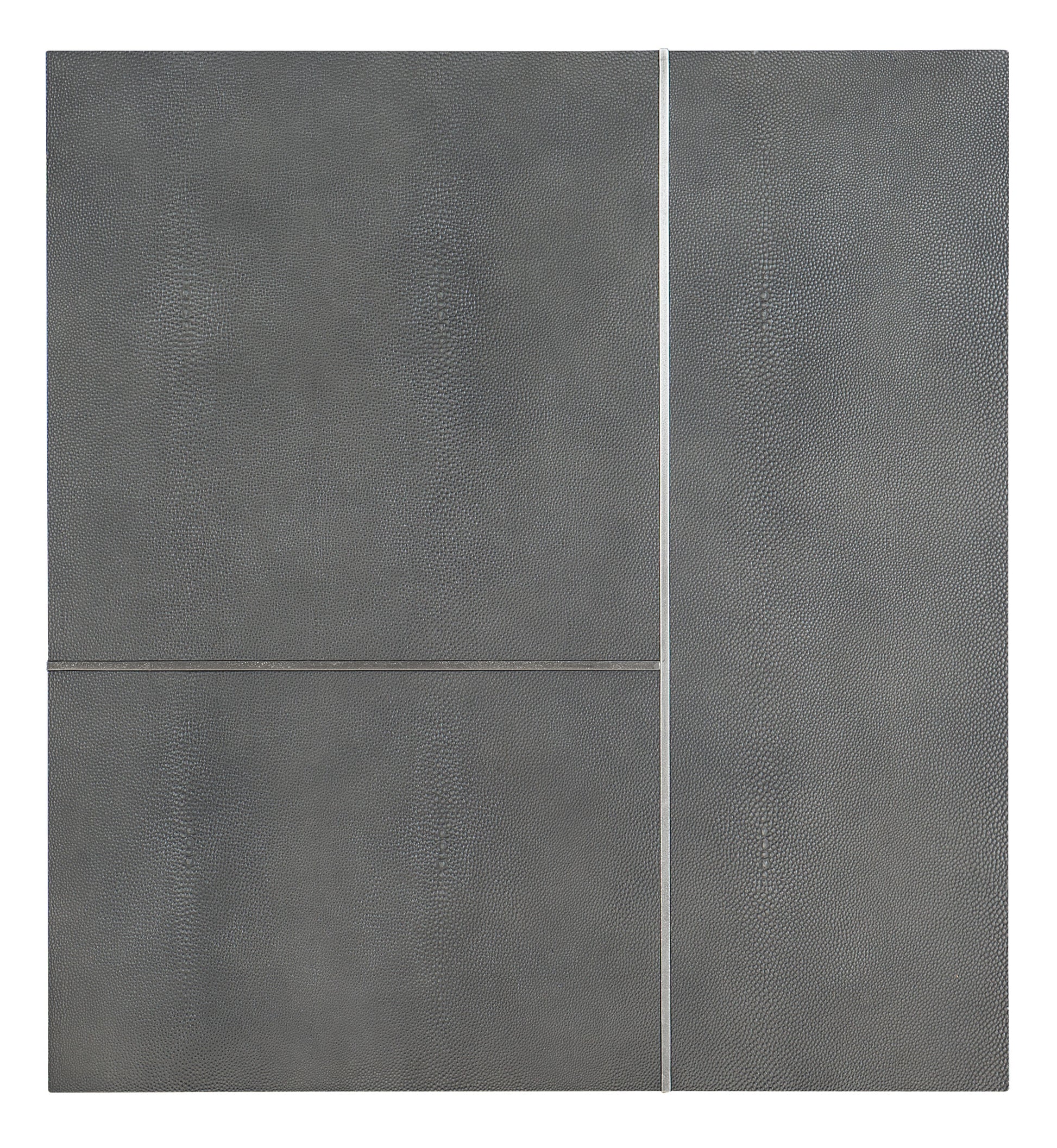 • A hand-hammered forged pewter base, stretcher and inlay and a faux Shagreen-wrapped top come together to create an eclectic, mixed-media piece in the Chapman End Table, inspired by downtown urban living