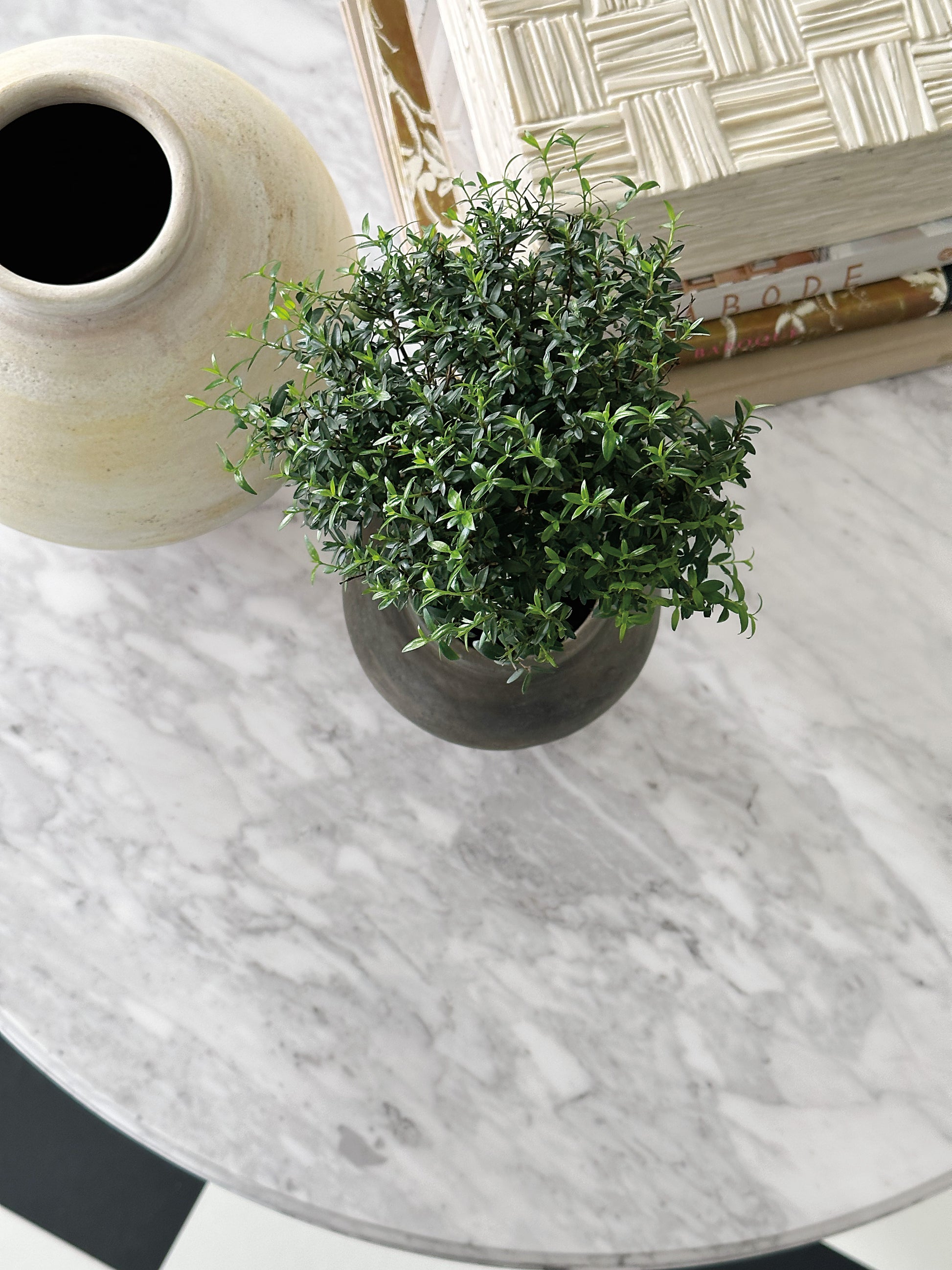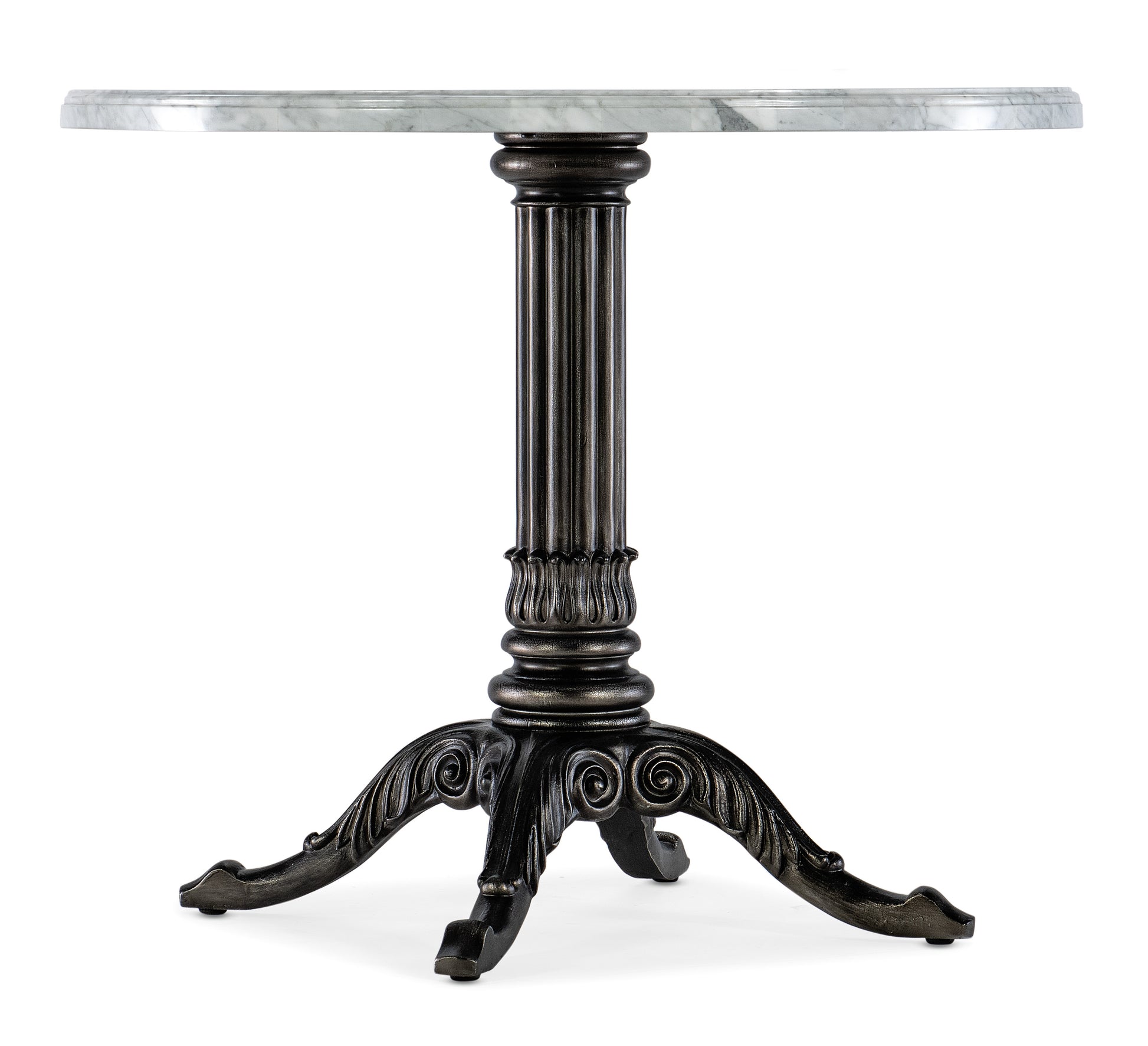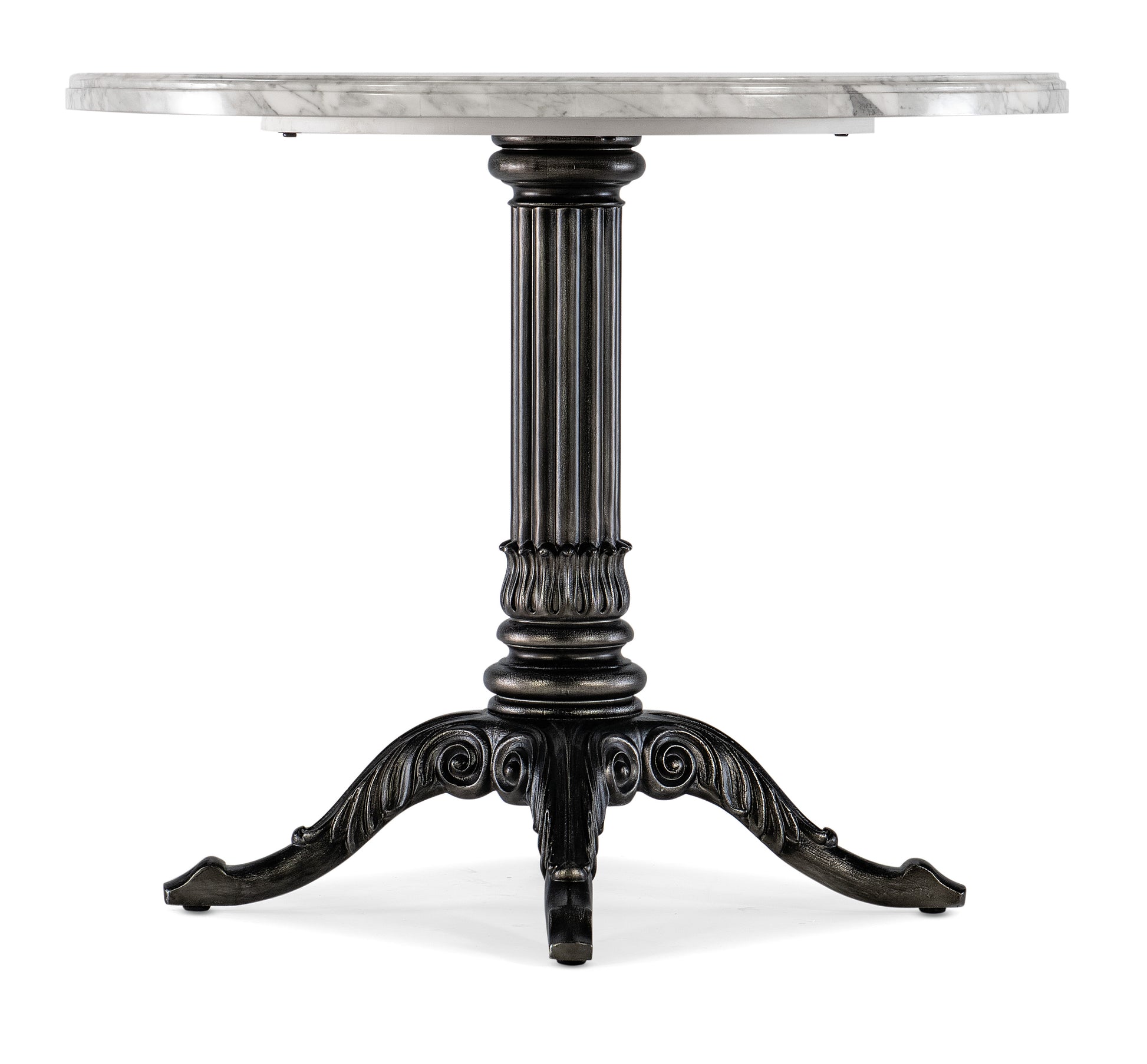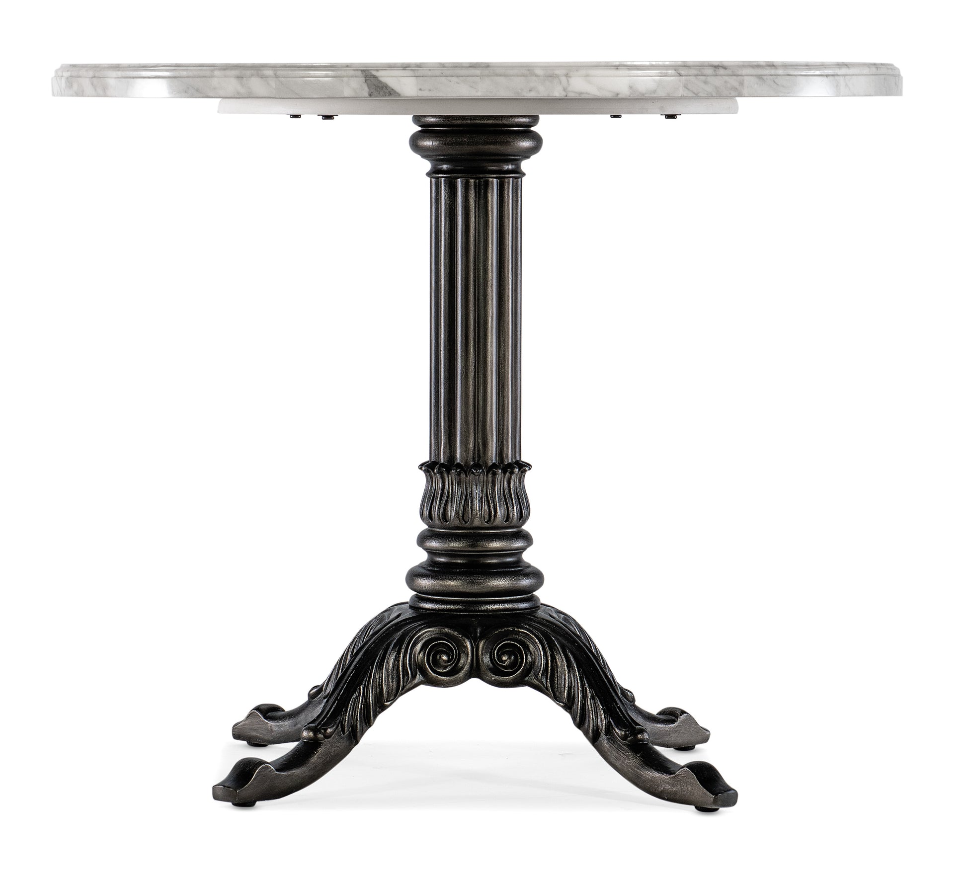 • Inspired by timeless Paris bistro tables, the Charleston table is a classic design with a Veneered Carrara Stone top and a carved pedestal base that takes its’ inspiration from the decorative iron gates that adorn the stately properties in Charleston