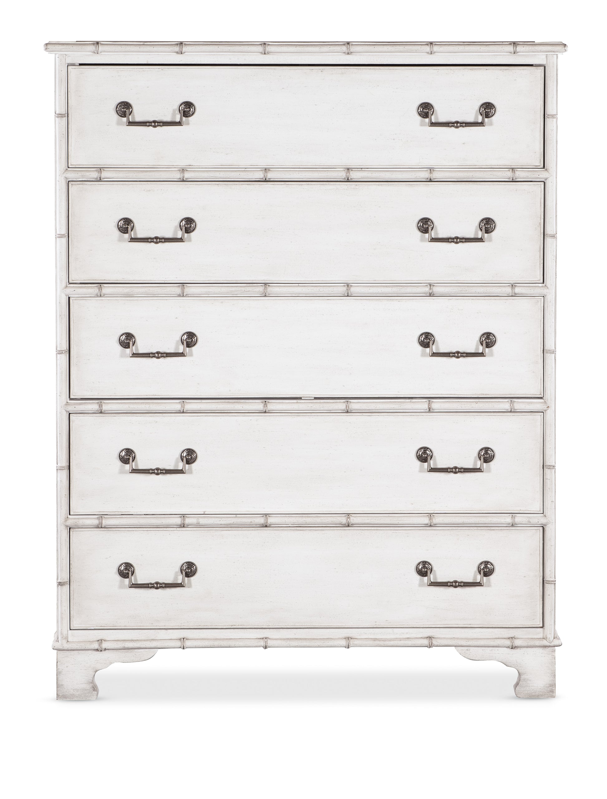 • Inspired by the tropical craftsmanship of the West Indies and the cane accents of the classic British and Dutch Colonial design periods, the Charleston Five-Drawer Chest has bamboo-motif trim and five drawers with self-closing drawer guides