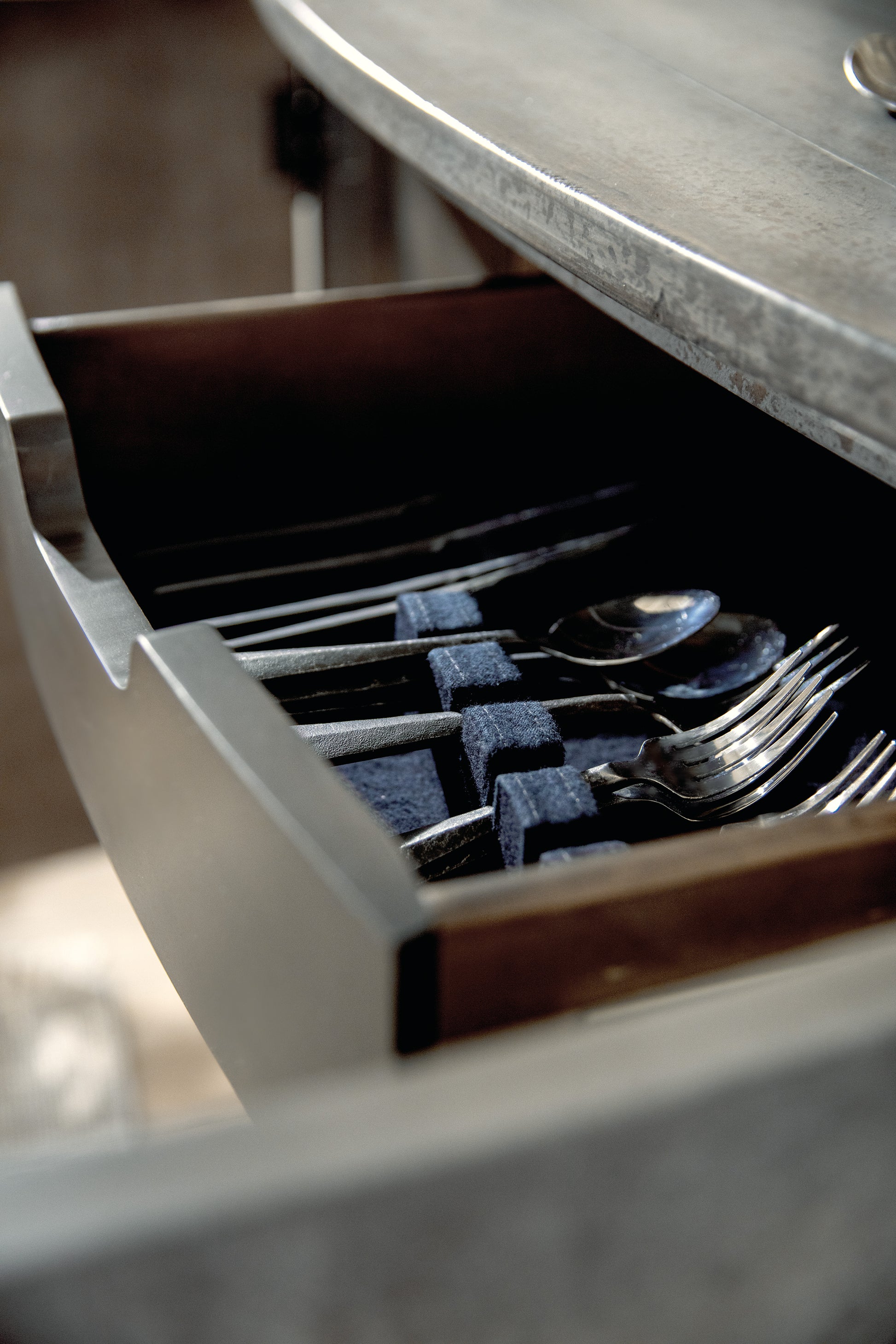 • As a delightful bonus, this piece is packed with storage, with one adjustable shelf behind each pair of center doors, 2 fixed shelves behind the left and right doors, 2 drawers behind the center doors and drop-in felt liners with silverware storage