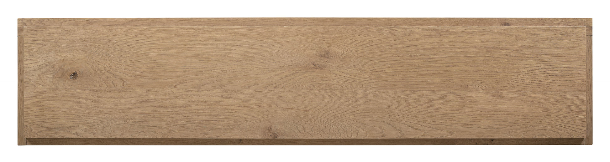 • The Haven Console Table from the Commerce & Market collection offers a mix of natural oak and luxurious travertine marble