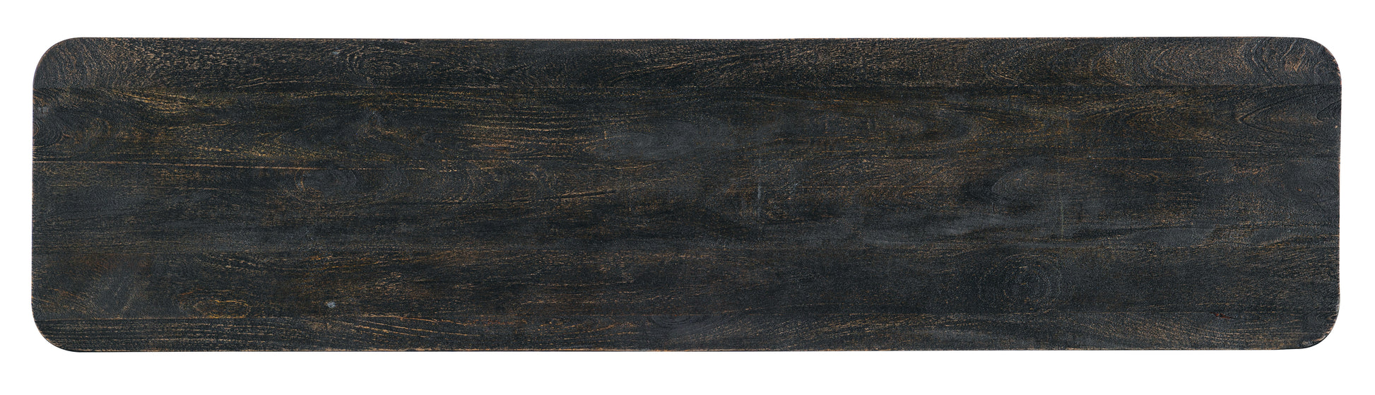 • Globally inspired and authentically designed, the narrow Arness Console Table is crafted of Mango Wood with a transparent black finish revealing natural color and grain variations for a casual rustic appeal