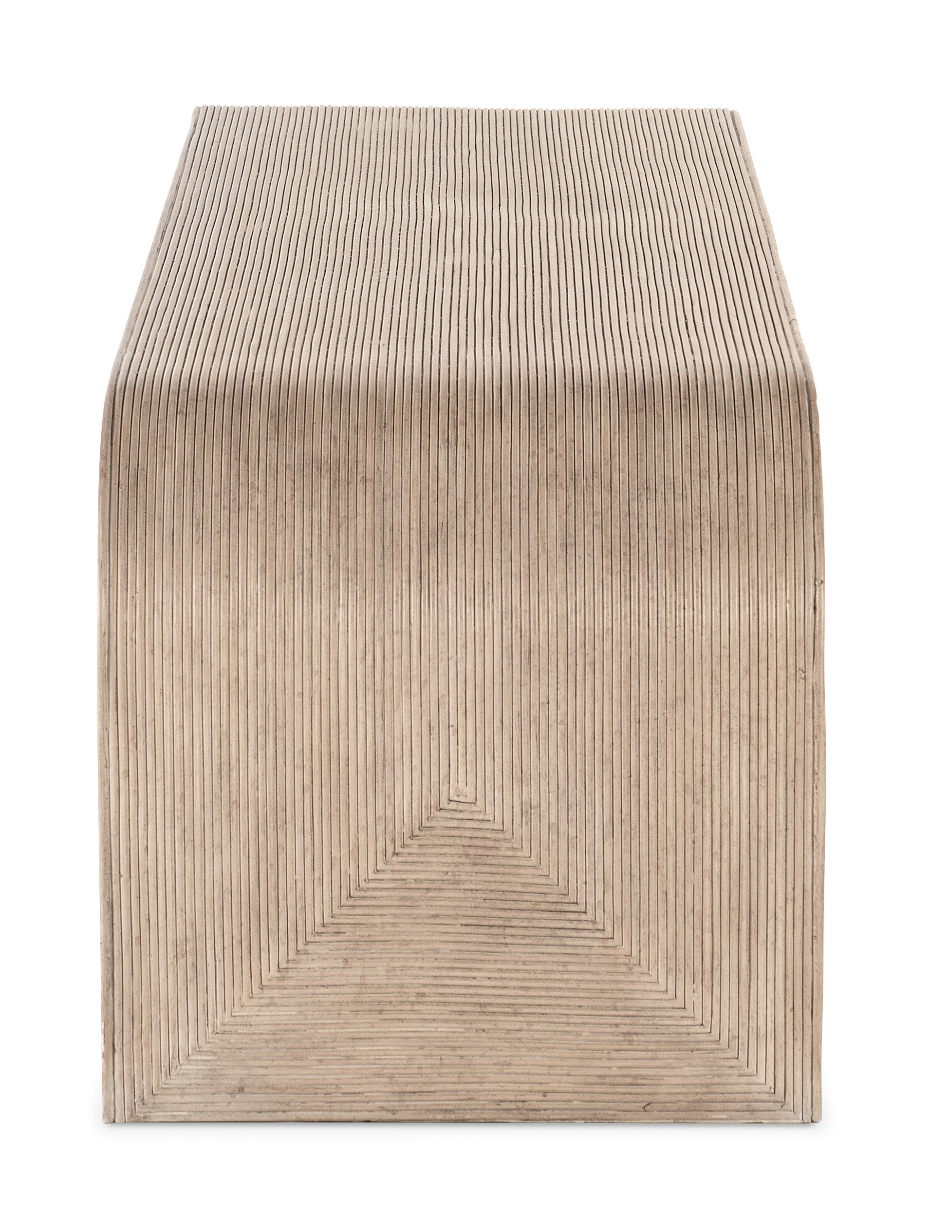• In a ridged design in a light natural wood finish, the bench has a triangle motif on the bottom of each side.Targeting the next generation of furniture buyers, Hooker unveils the Commerce & Market brand of accent and occasional pieces