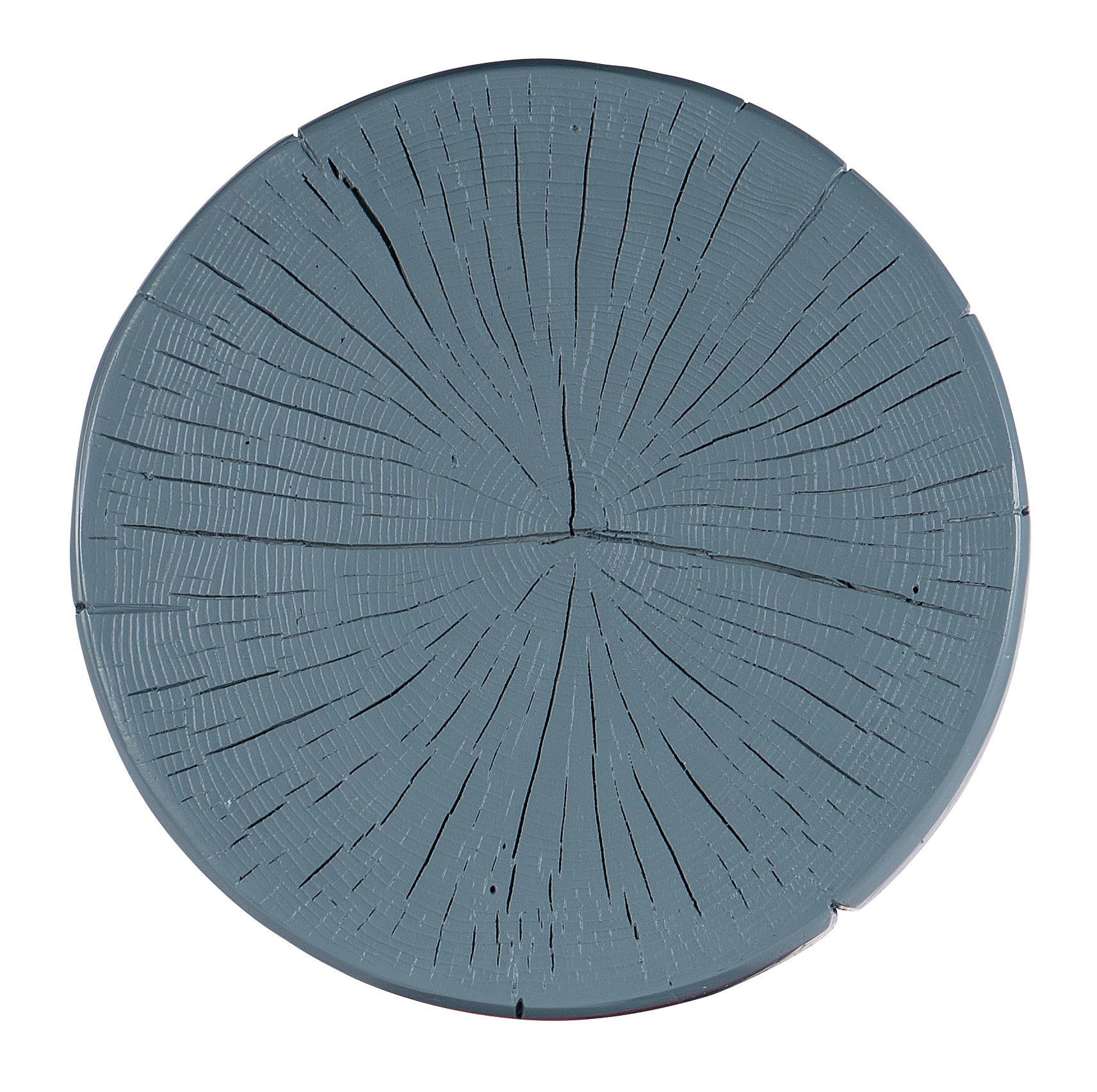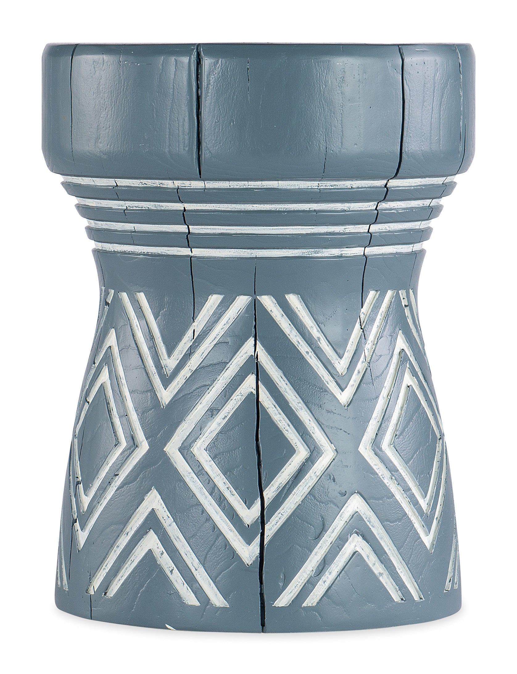 • Crafted with cast resin in a design to portray nature’s aged roots, the Carved Stump Side Table is hand-painted with a bold geometric tribal print in white on a soft blue background