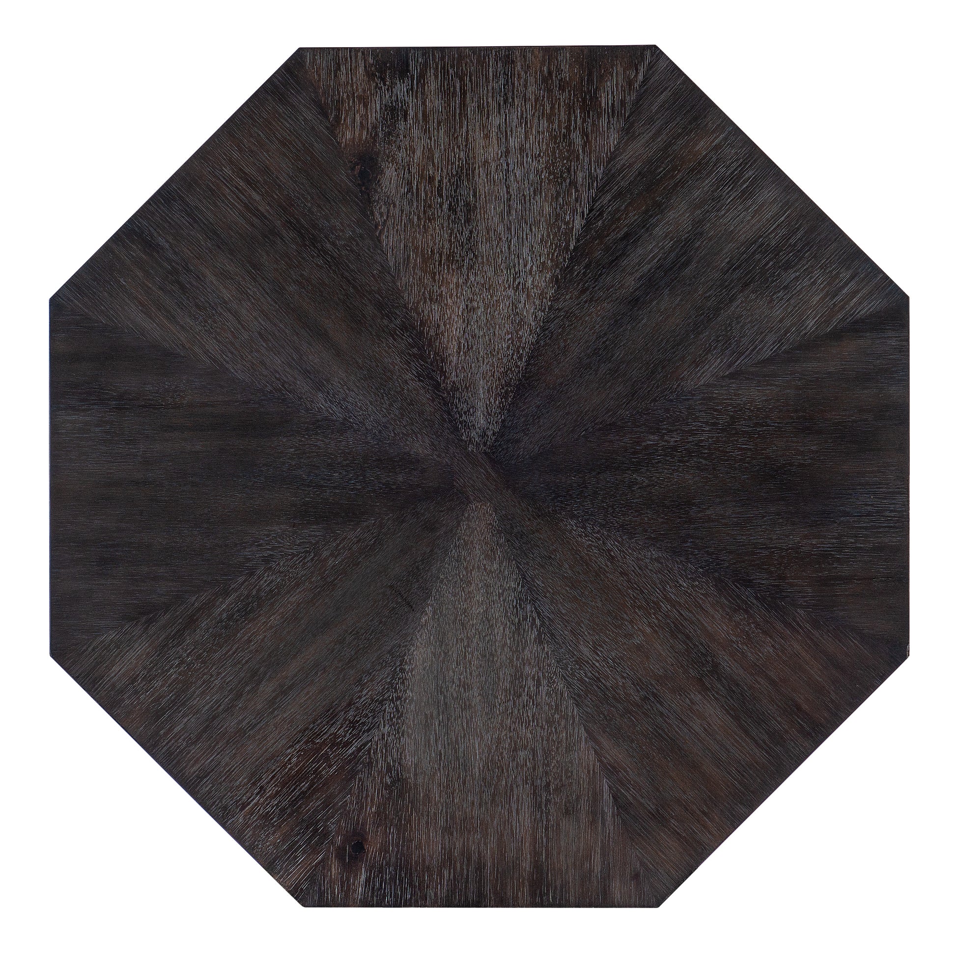 • With an exotic smokey finish and stylish octagonal shape, the Honeycomb Cocktail Table is crafted of Acacia Veneers and has a plinth base