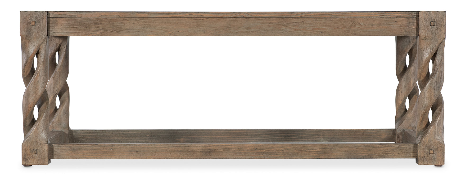 • Exuding craftsmanship with attention to detail, the casual Jack O’Bein Cocktail Table has twisted legs and a paned veneer top with peg accents