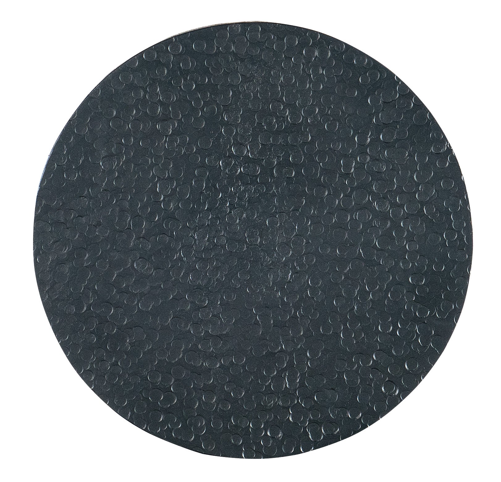• The compact 16-inch-round silhouette has a concave shape with bone inlay on the top two sections and a plinth base