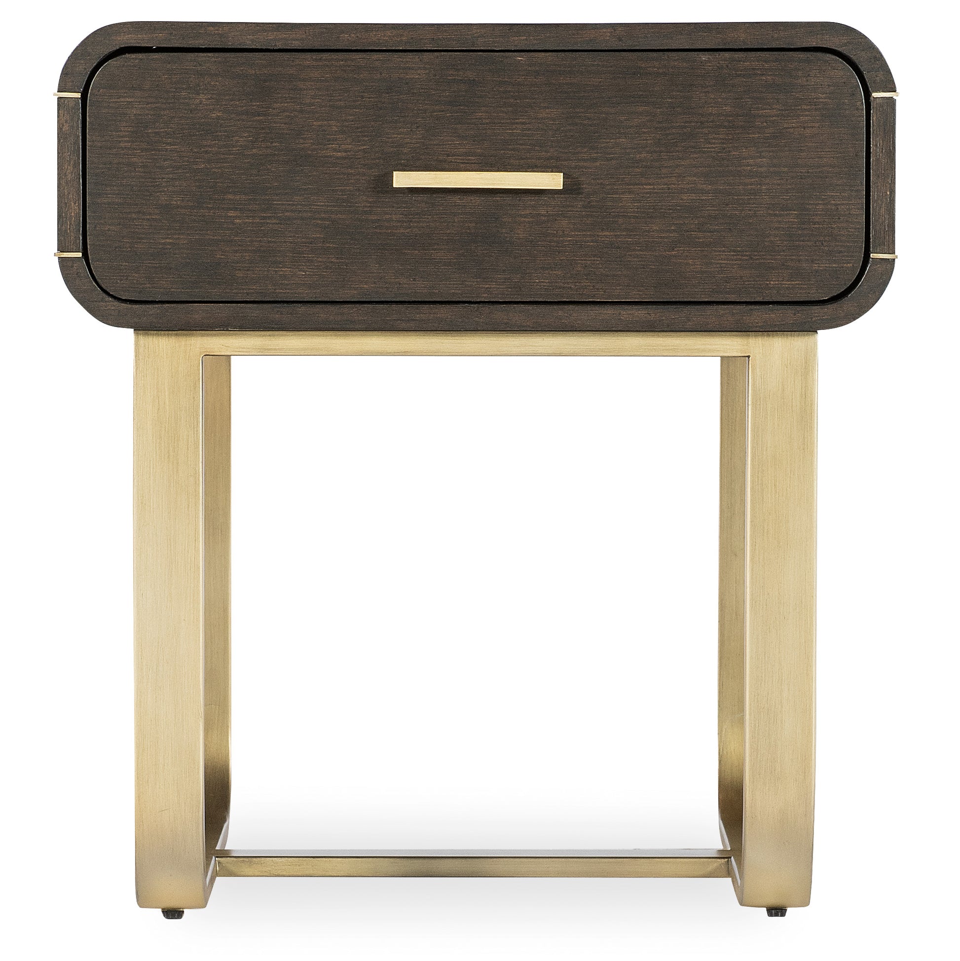 • The Metropolitan End Table is a soft modern silhouette combining Oak Veneers in a dark wood finish with a rounded gold metal base and accents.Targeting the next generation of furniture buyers, Hooker unveils the Commerce & Market brand of accent and occasional pieces