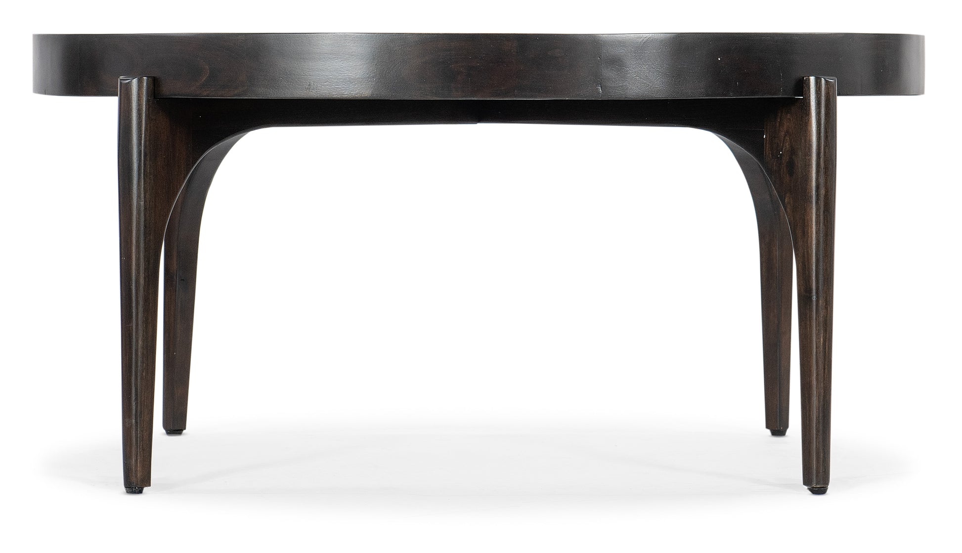 • A chic modern take on a classic silhouette, the Commerce & Market Round Cocktail Table is crafted of Acacia Solids in a dark natural wood finish revealing color and grain variances for organic beauty