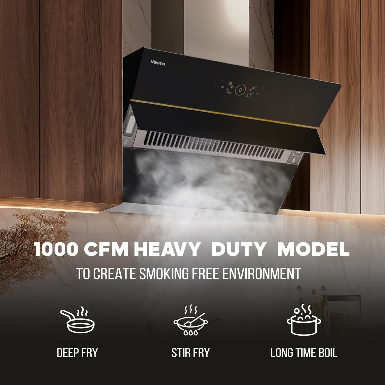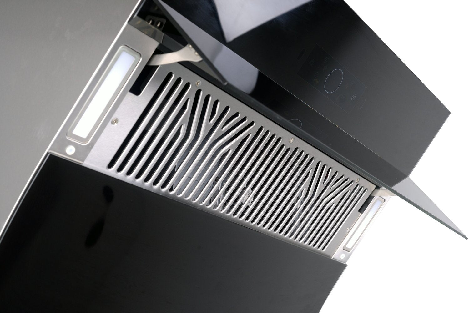 - UNIQUE DESIGN: This new range hood utilizes a 90?? automatic open baffle plate for advanced side draft filtration, reducing the dispersion of cooking fumes and odors while enhancing airflow by quickly filtering up to 6 square feet of space.