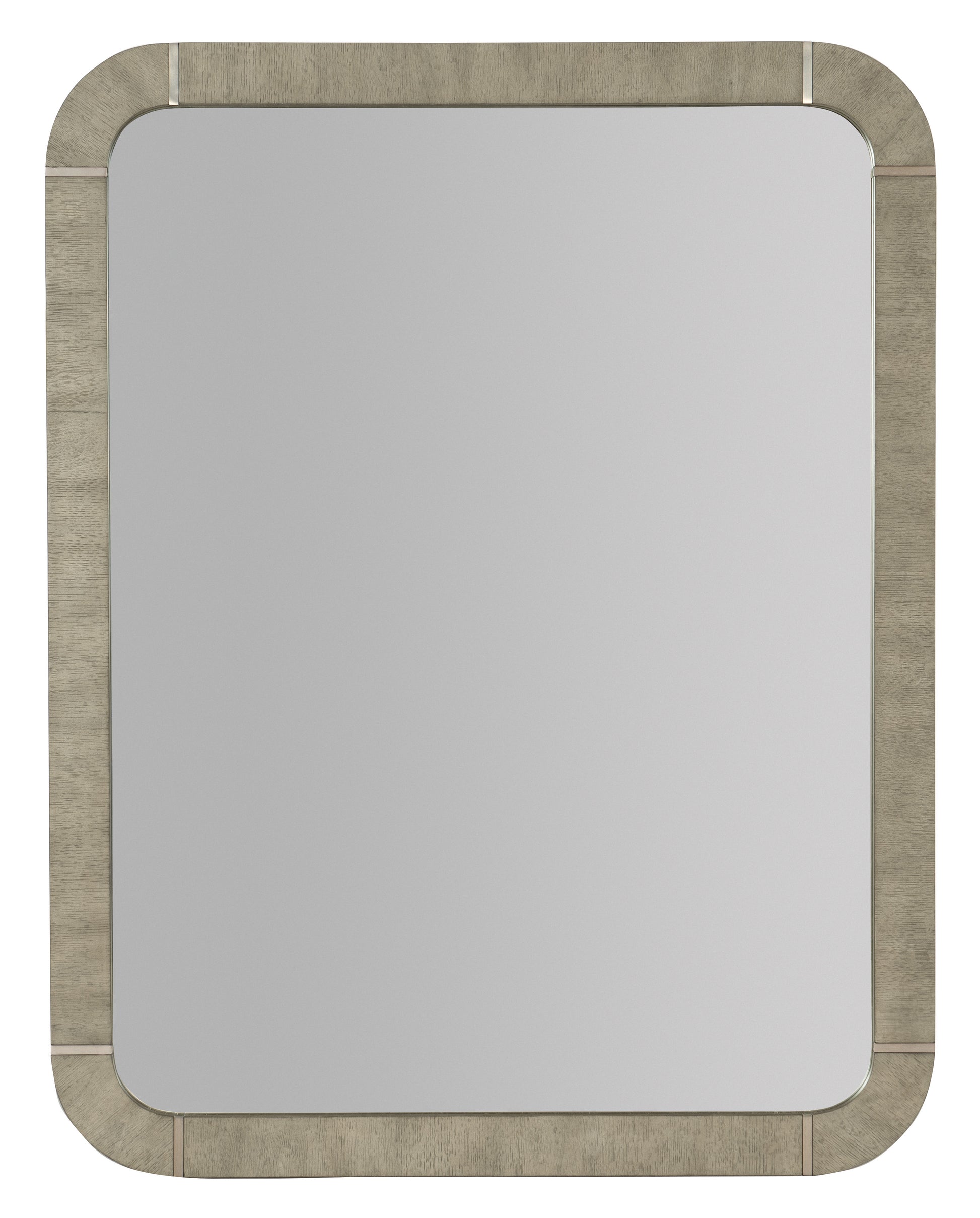 • With a rustic weathered finish and clean modern lines, the striking Pinnacle Trails Mirror is crafted of Oak Veneers in a soft smoked gray Mink finish with metal accents.Capturing the essence of nature’s organic color palette and the aura of a rustic mountain cottage, Hooker introduces the Linville Falls collection