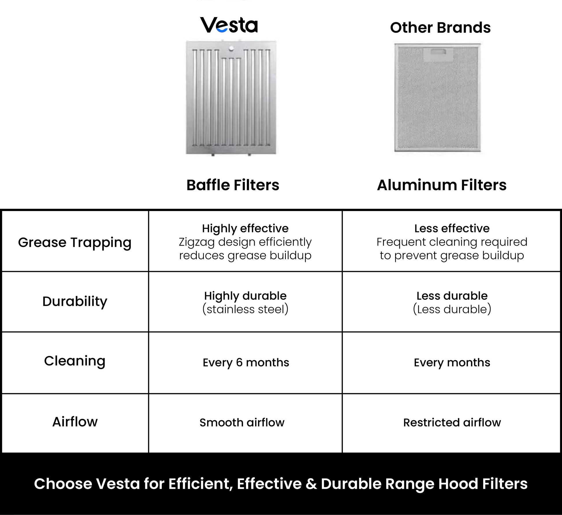 - Advanced Removable Filters: Enjoy superior grease capture and easy maintenance with our premium baffle filter system. Designed for maximum efficiency, these filters trap grease and oil effectively and can be easily removed for quick cleaning in your dishwasher or sink, keeping your kitchen clean and fresh.