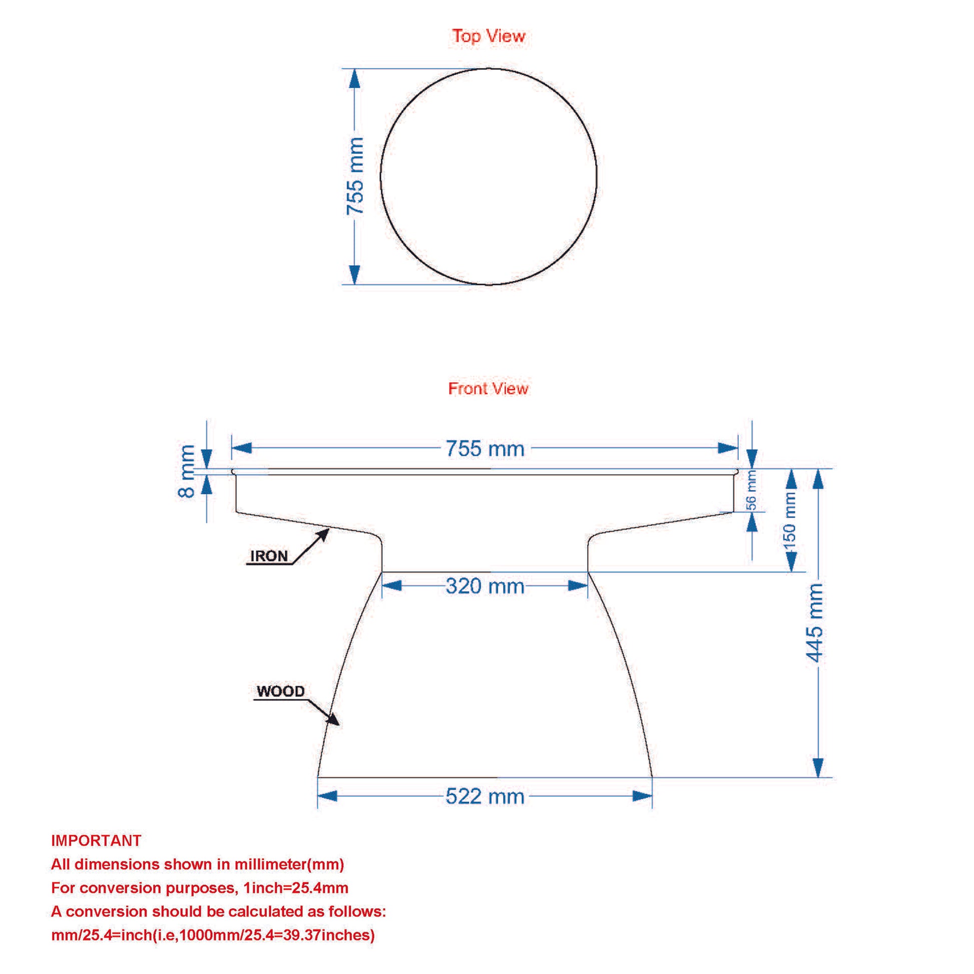 • Iron table top in a smooth black finish