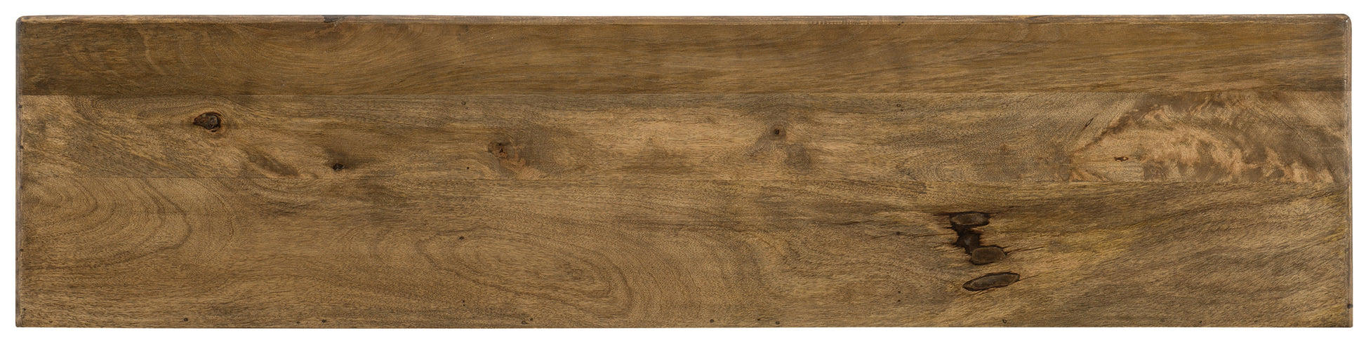 • With a chic designer look for sophisticated casual appeal, the Serramonte Console is crafted of Mango Wood and features a German silver metal chevron-patterned inlay on the front with dark pewter-colored European pulls
