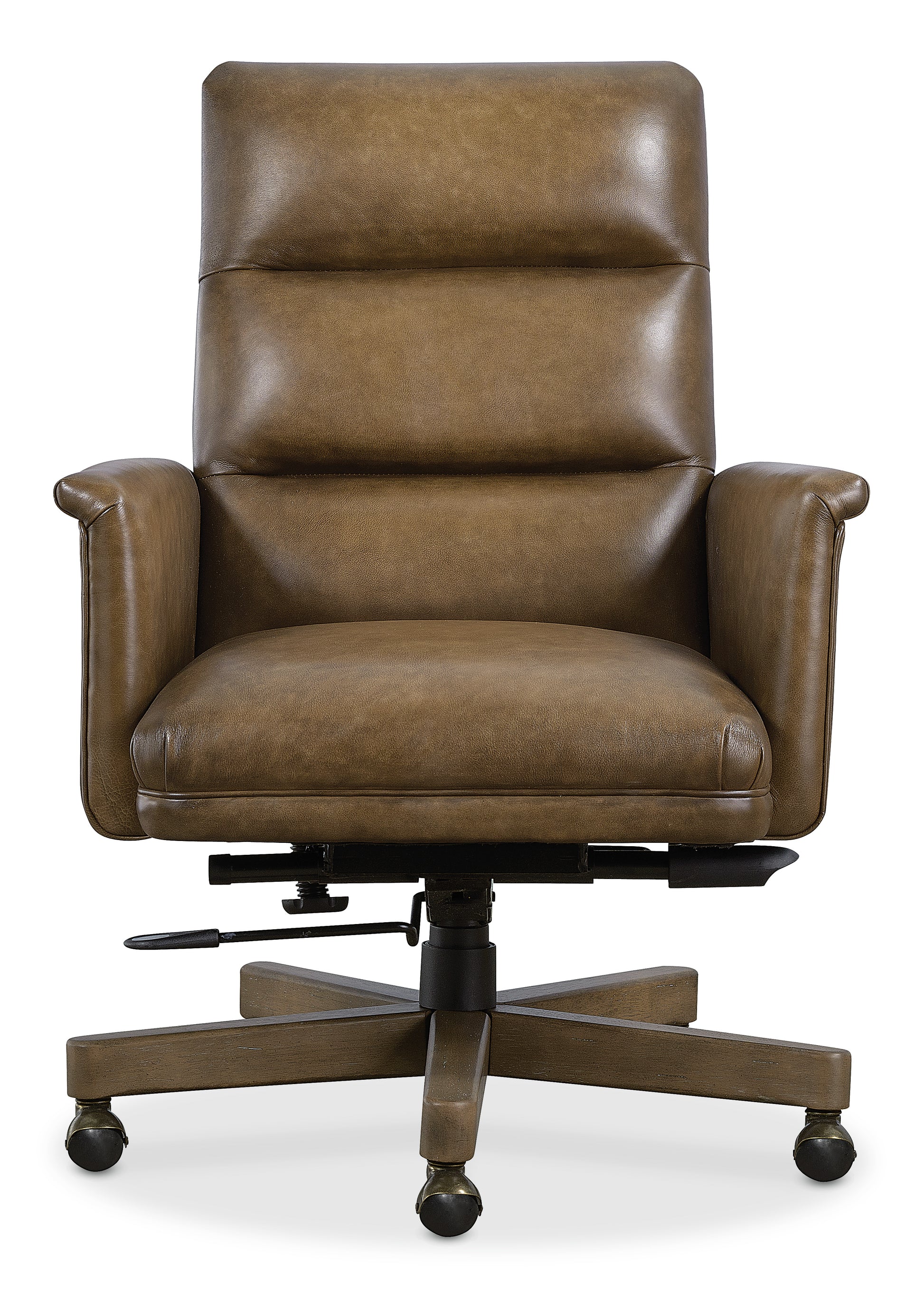 • Antique gold casters and a wood cap base complete its sophisticated look, ideal for any executive office space.Hooker Upholstery is a designer-inspired collection of upscale leather seating that includes versatile reclining chairs, modern-day reclining sofas, eclectic club and artisan accent chairs, as well as a selection of executive desk chairs for the home