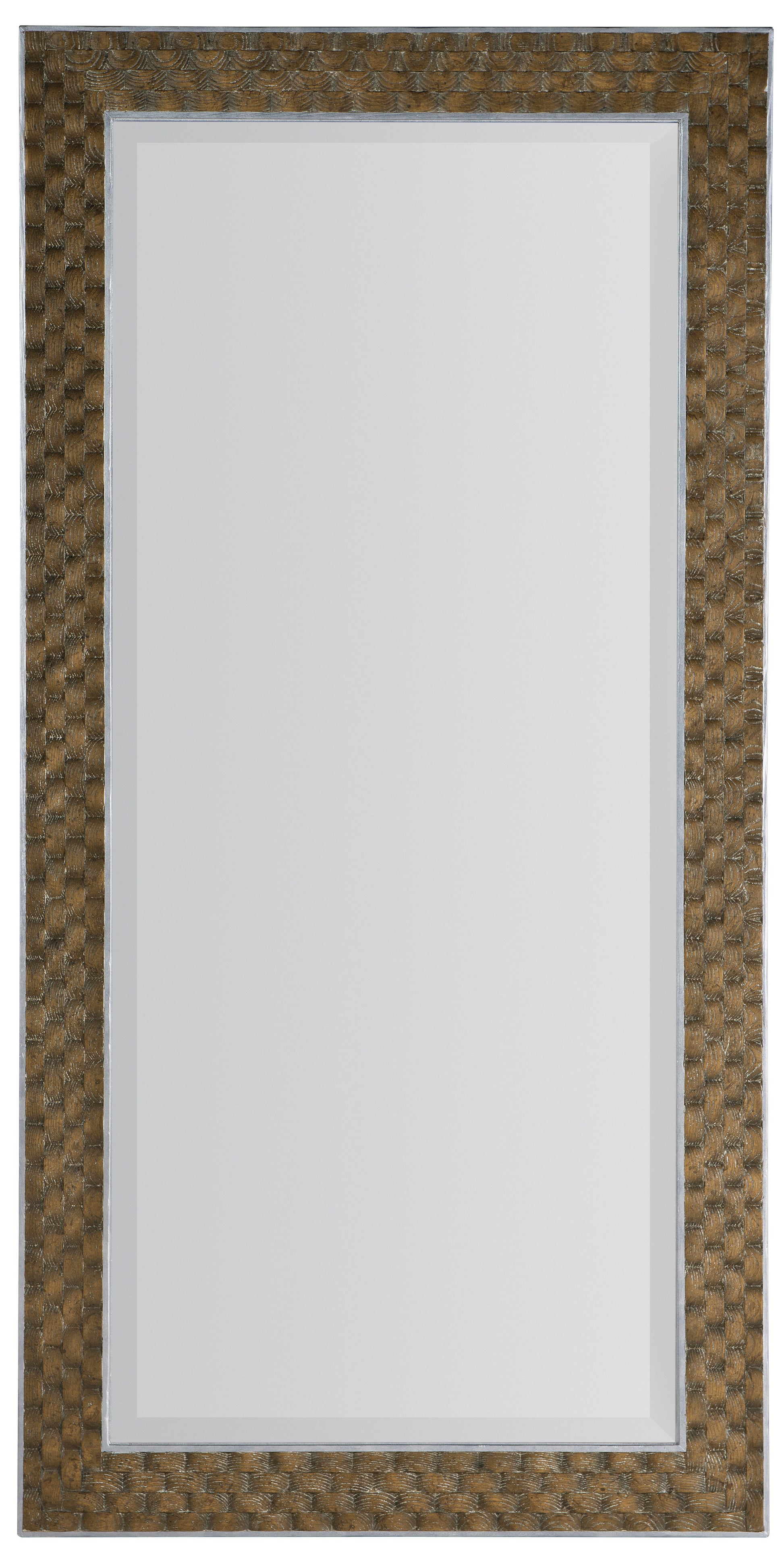 • Tactile and textural, the Sundance Floor Mirror projects organic elegance with its rich brown layered cork-like frame accented with silver-colored metal