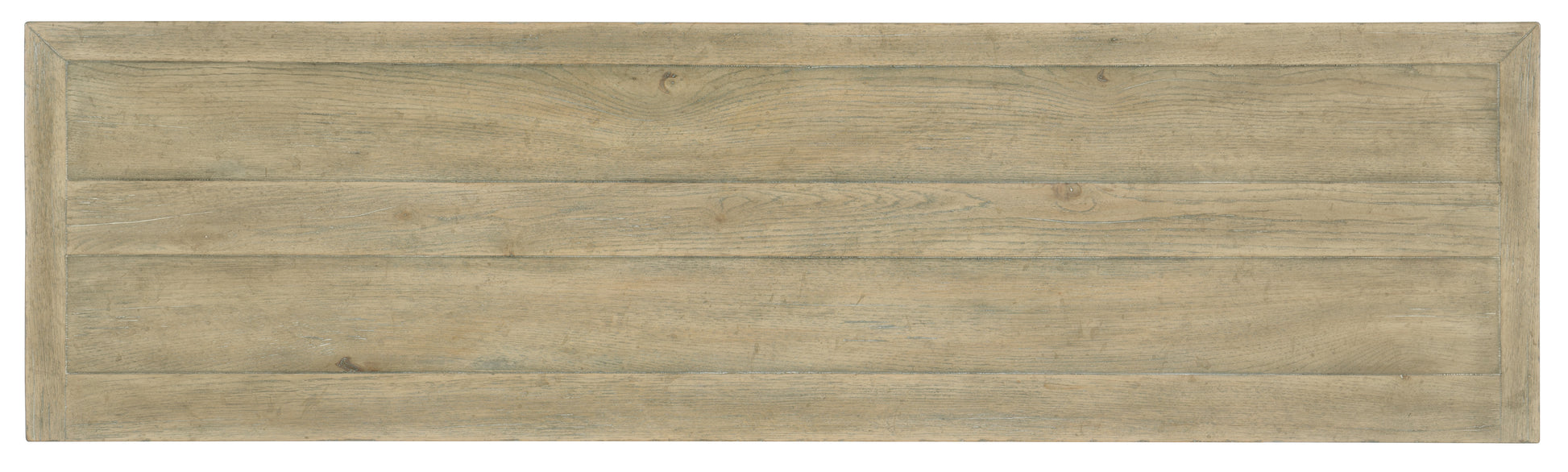 • With a laid-back tropical vibe, the Surfrider Media Console has three rattan-front doors with soft-close hinges and is finished in Driftwood, a light natural finish with distressing