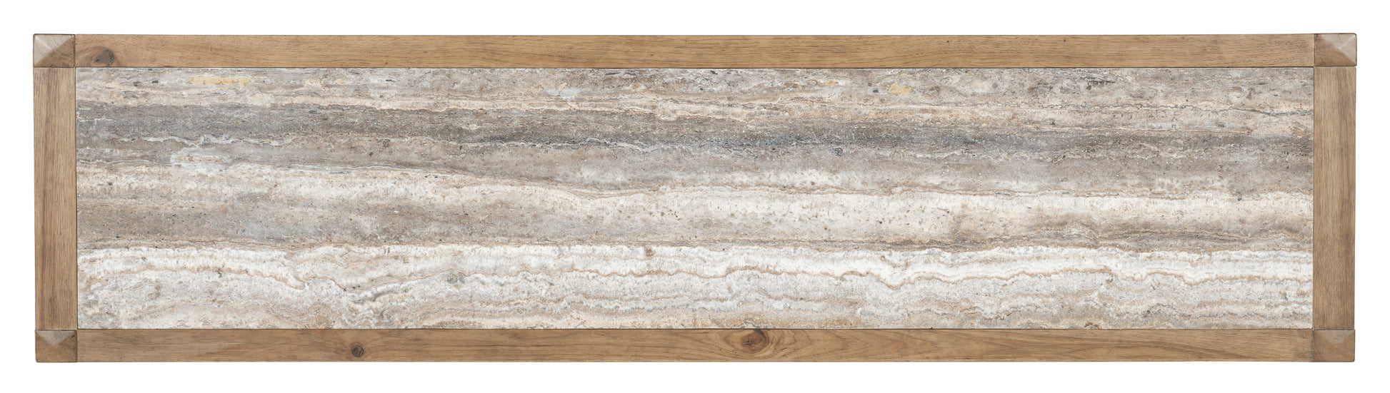 • Inspired by California wine country and influenced by the quaint bungalows and craftsman architecture of the region, the Vineyard Row Buffet is made of Pecky Hickory and White Oak Veneers with a honed gray travertine insert on the top