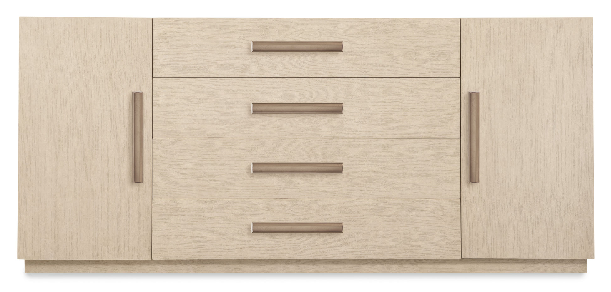 • Crafted with quartered oak veneers, the Polished Limestone finish offers a soft hand, adding character and depth to the group